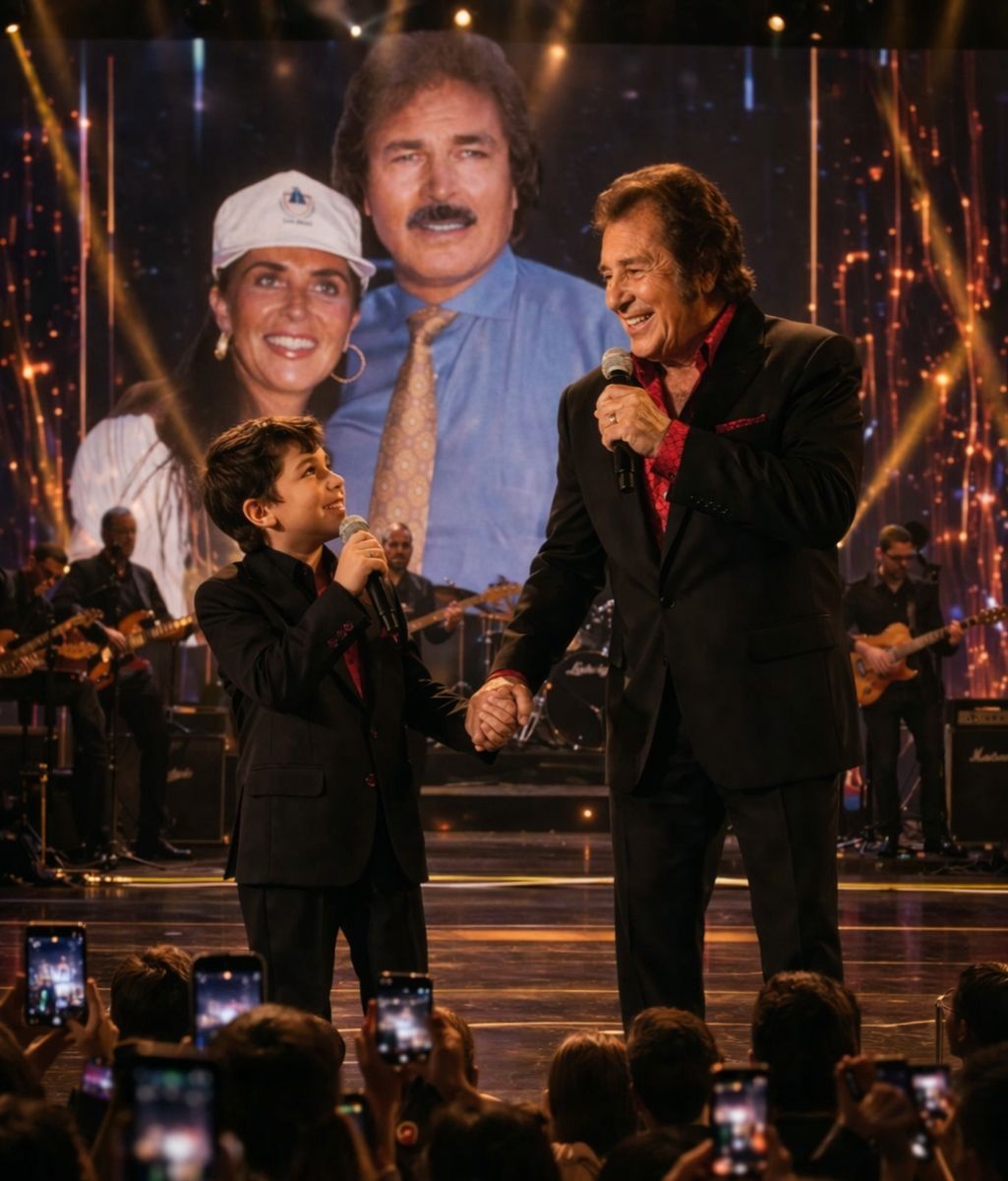 A young boy—no older than seven—walked slowly into the soft glow of the spotlight. He was the performer’s grandson. His steps were steady, unhurried, carrying a quiet confidence only a child could possess. Though unaware of the full weight of the moment, he seemed to understand exactly what was needed.