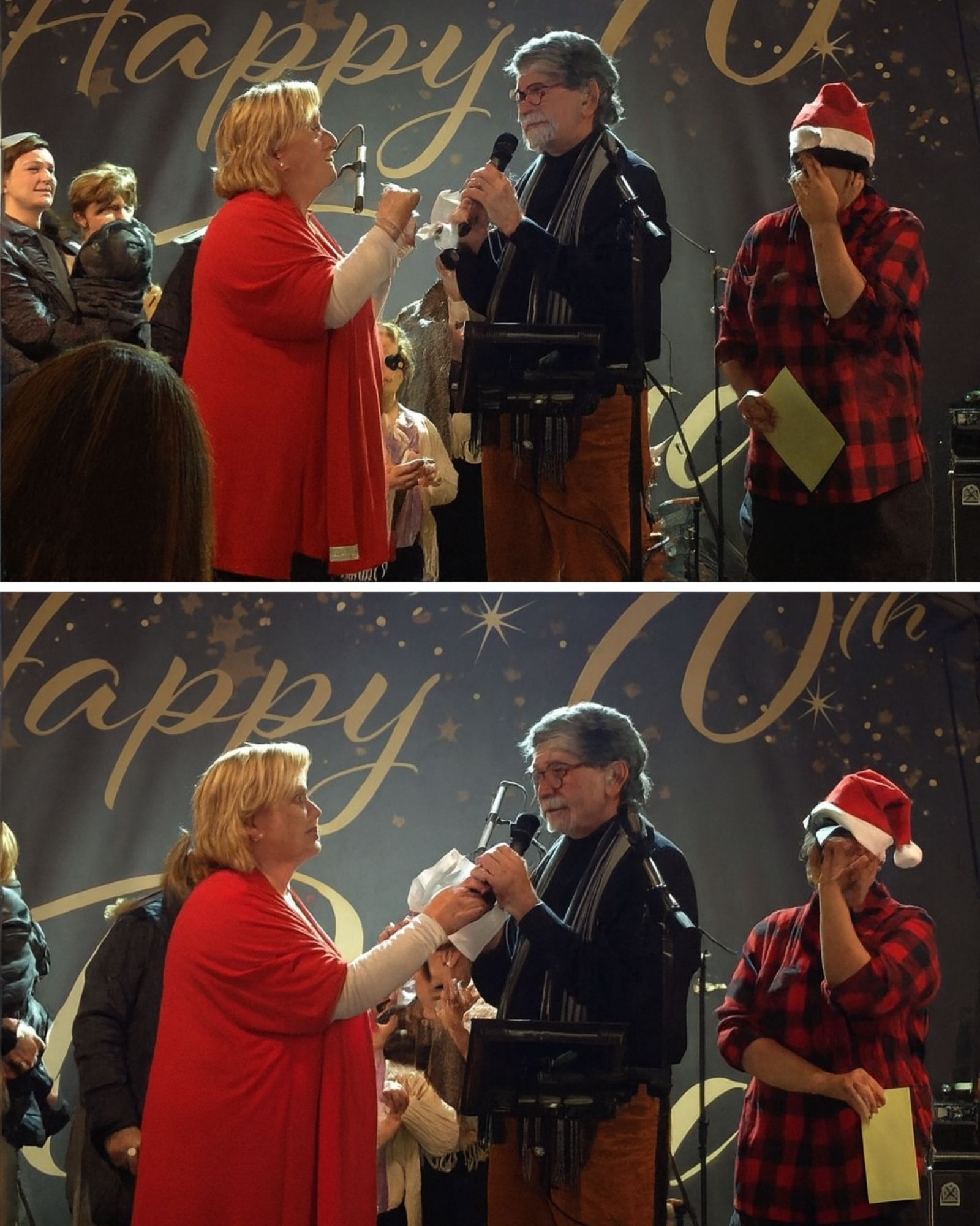 Tears glistened; some held hands a little closer. For a moment, it wasn’t a concert. It was two souls, bound by miles, memories, and music, silently saying “thank you” to one another.