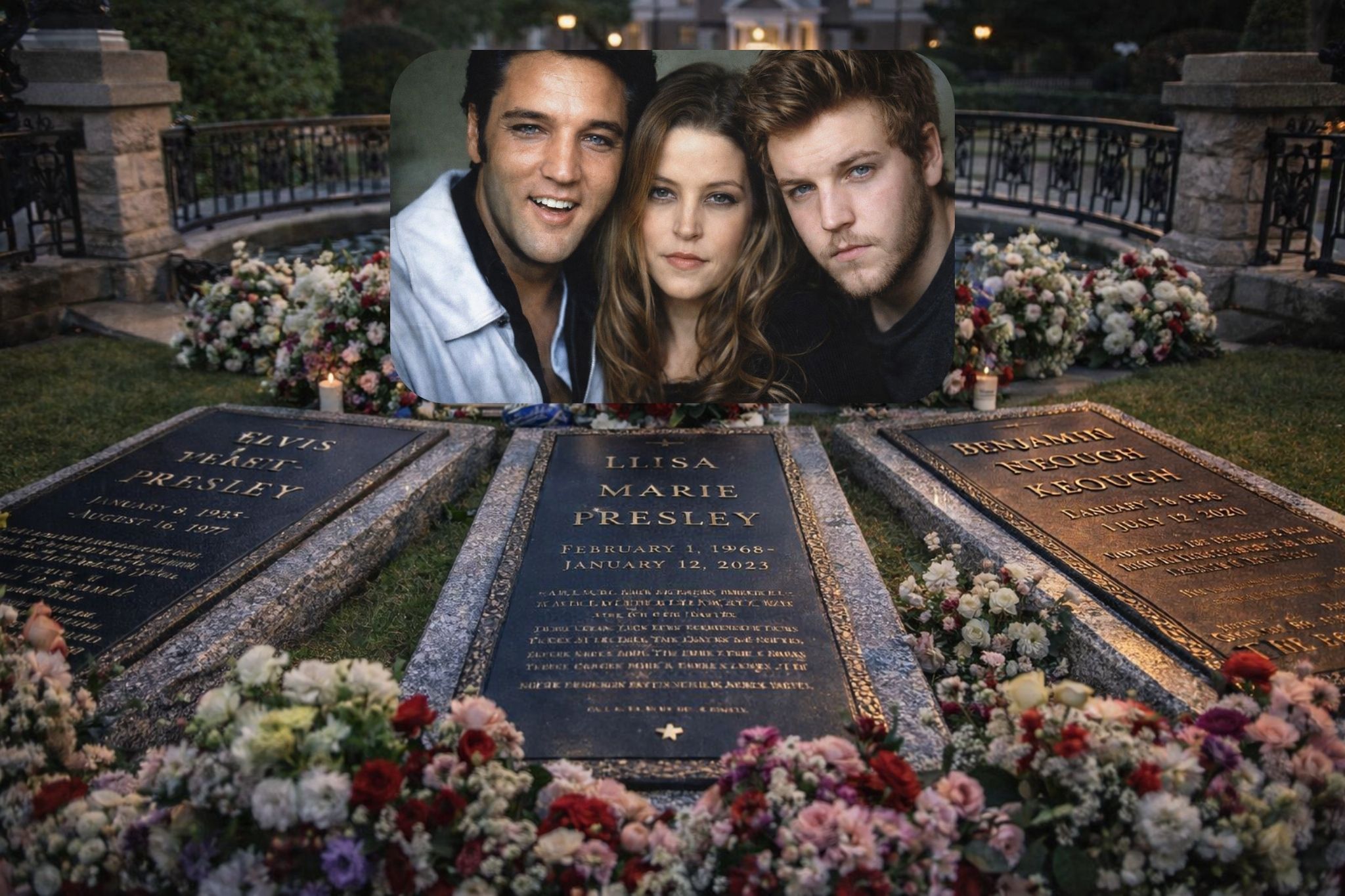 For those who followed Lisa Marie’s life with empathy, one detail resonates with particular force: her burial near her son, Benjamin. If Elvis’s death was a collective heartbreak, Benjamin’s loss was Lisa Marie’s private devastation—one that never truly released its hold. Mothers do not recover from that kind of grief; they learn to carry it. In imagining that quiet space—father on one side, son on the other—it does not feel symbolic. It feels honest. Grief arranged by love, not by spectacle.