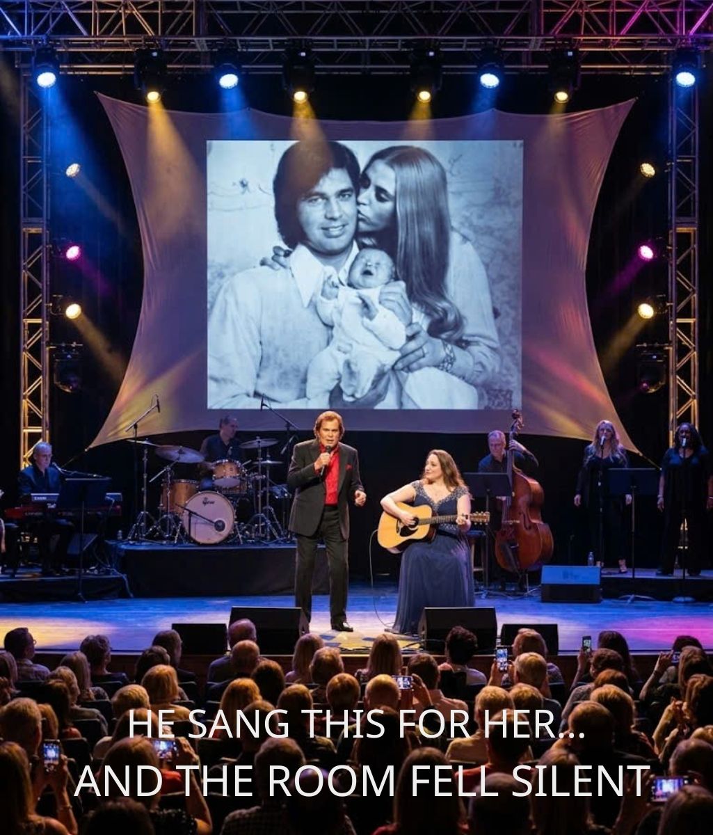 Before the music began, Engelbert paused. He looked upward, as if searching beyond the lights, beyond the ceiling—as if reaching for someone no longer physically present, yet still profoundly near.